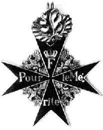 Der Orden Pour le mérite mit drei Eichenblätter in Gold – Anfertigung 1914-18 (siehe oben im Text – Erweiterung in der Stiftungsurkunde des Eisernen Kreuzes)